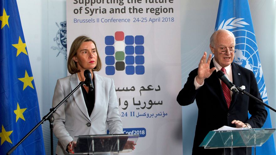 La alta representante de la UE para Asuntos Exteriores, Federica Mogherini, pidió en una rueda de prensa junto al enviado especial de la ONU en Siria, Staffan de Mistura, "silenciar las armas" tras más de siete años de conflicto, "por razones políticas y humanitarias".
