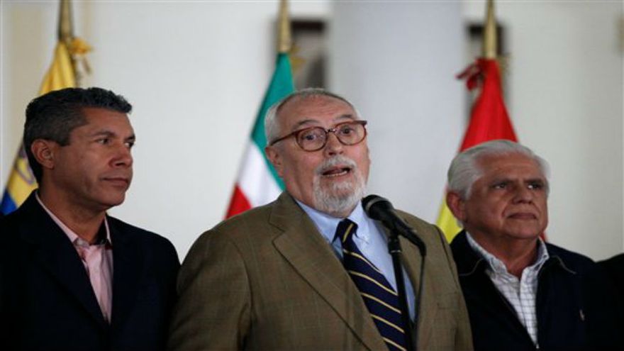 Los cancilleres sudamericanos y el nuncio apostólico se reunieron el domingo por unas dos horas con los representantes de la oposición para escuchar las razones que los llevaron a congelar las conversaciones con el Ejecutivo. Los facilitadores extranjeros también tienen previsto reunirse este lunes con los representantes del gobierno, dijo Velásquez.