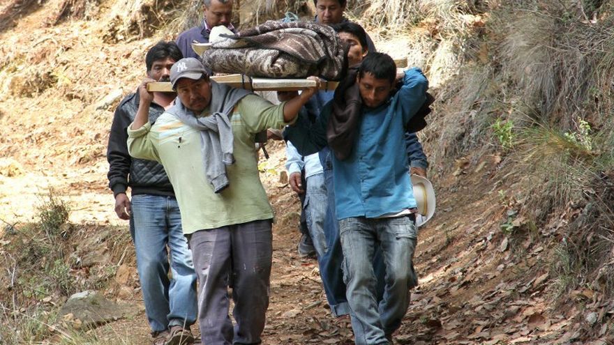 Esta tarde, las autoridades sacaron los cuerpos del agreste lugar en hombros sobre camillas de madera, cubiertos por cobertores.
