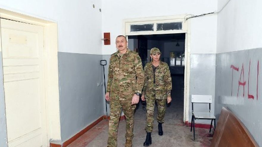 Azerbaiyán publicó imágenes de una visita triunfal de su presidente Ilham Aliyev junto a su esposa a lugares emblemáticos de los territorios reconquistados durante el reciente conflicto en Nagorno Karabaj contra secesionistas armenios.