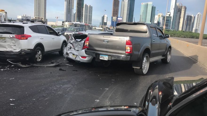 El accidente ocurrió en el tramo marino, en dirección a Panamá Este. Las imágenes muestran a un SUV, un sedán y un pickup. Se desconoce quién fue responsable del hecho.