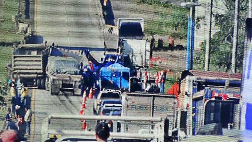 El accidente de dos camiones afectó a los dos vehículos 4x4. Eran una mula (articulado) con un camión volquete, una camioneta Tucson y una tipo Prado. Pesadas grúas llegaron al sitio para hacer la remoción de los vehículos, lo que dilató más la espera.