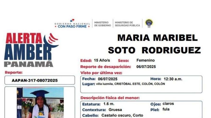 Colón/Las autoridades panameñas han activado la alerta Amber tras la desaparición de una adolescente en la provincia de Panamá, según informó el Ministerio Público.