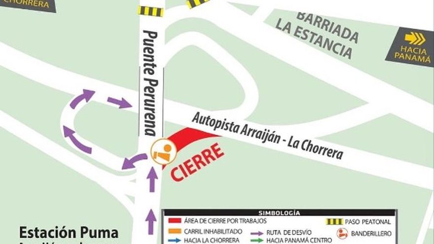 Panamá Oeste/A partir de las 10:00 a,m, del lunes 29 de agosto, se realizará adecuaciones viales en la Autopista Arraiján-La Chorrera y el Puente Perurena, ubicado en el corregimiento de Burunga.