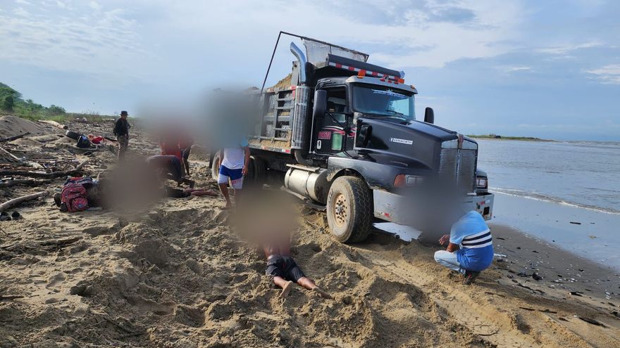 Estas personas fueron aprehendidas en flagrante delito, cuando se encontraban realizando paleado y traslado de camiones con la arena ilegal extraída de la playa que se presume sería vendida a comercios.