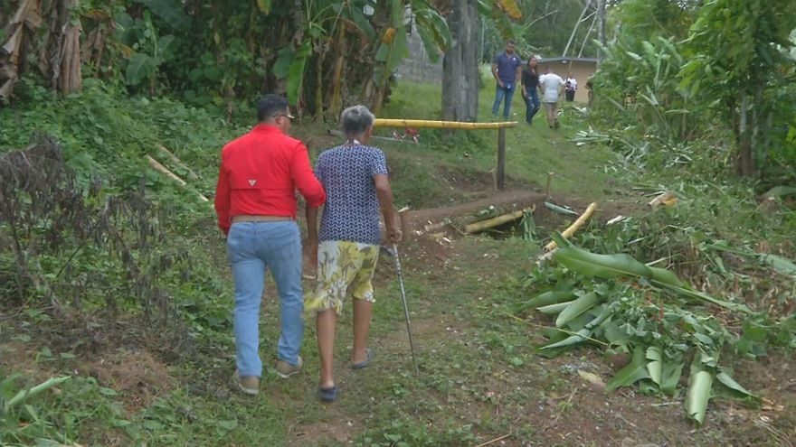 Ante el bloqueo, los residentes improvisaron un camino alterno, una especie de trocha abierta en el terreno de otro vecino, que apenas permite el paso. Para personas como María Luisa, una residente de 80 años, este trayecto resulta prácticamente imposible de transitar, especialmente en casos de emergencia.