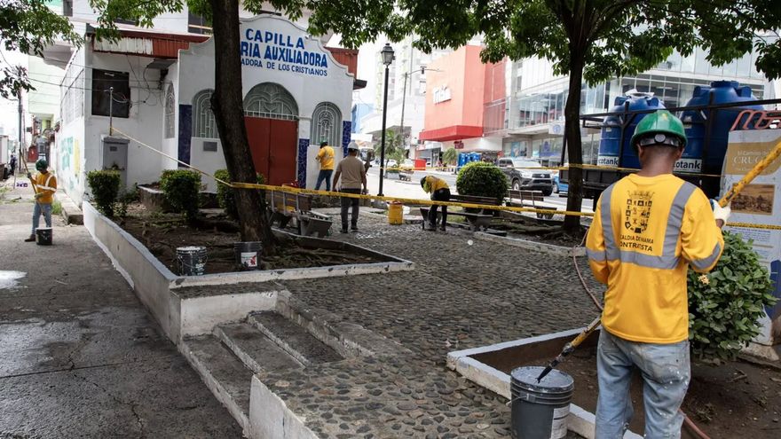 Este operativo de limpieza incluye el mantenimiento de áreas verdes, hidro lavado de aceras, mantenimiento del mobiliario urbano municipal y pintura del área en general.