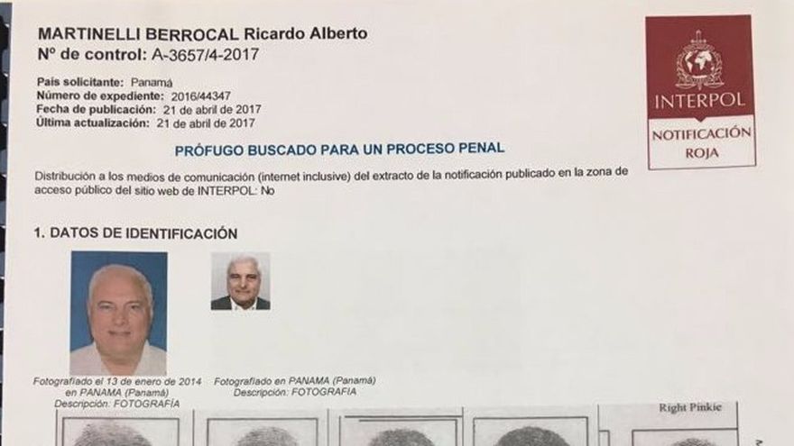 La Oficina de Interpol (Policía Internacional) en Francia, acogió una petición de la Corte Suprema de Justicia (CSJ) y emitió una alerta roja para lograr de la detención del expresidente Ricardo Martinelli, que es requerido en Panamá por la investigación de los pinchazos telefónicos.