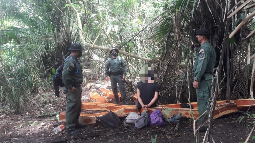 La aprehensión de este ciudadano se dio bajo la presunta comisión del delito de tráfico de vida silvestre (madera).