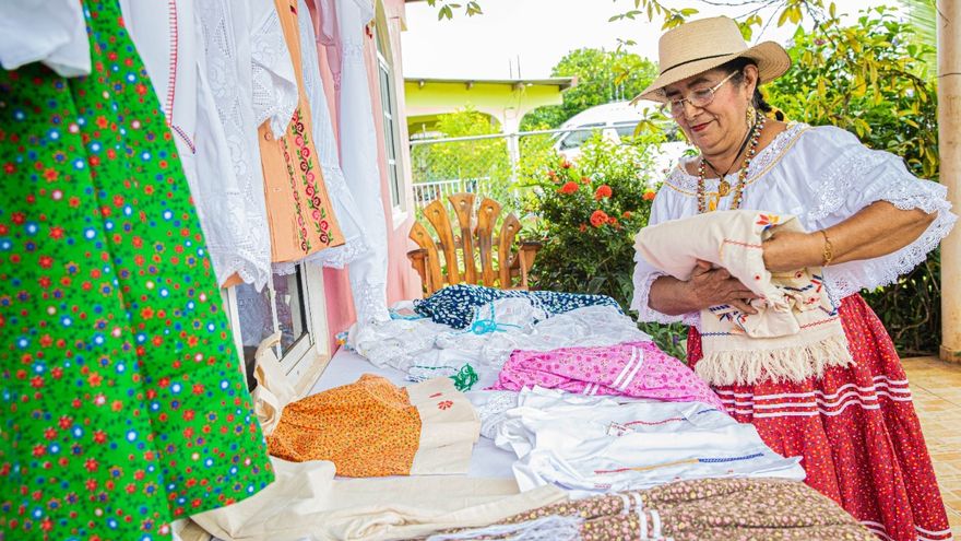 Lucresia Chávez tiene más de 30 años de estar dando cátedra de cómo se confeccionan las polleras montunas ocueñas, las camisas estilizadas, las cambras, las camisillas y otras piezas típicas de nuestro país.