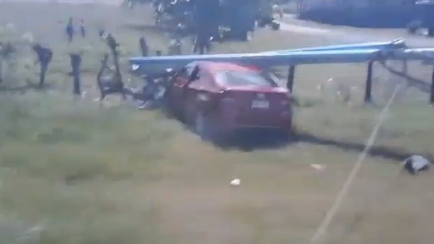 El auto terminó fuera de la carretera y se chocó contra un poste del tendido eléctrico, que se cayó del fuerte impacto.