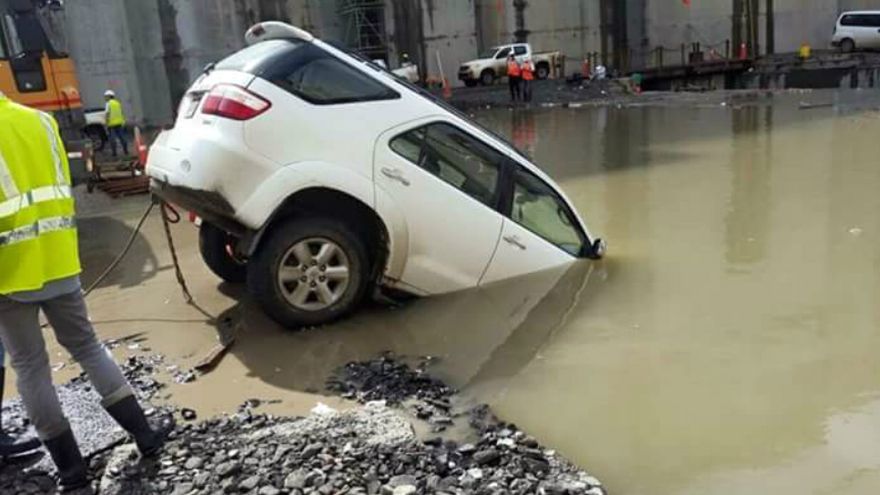 Una camioneta Toyota Fortuner cayó dentro de una acumulación de agua en la cámara de la esclusa del Canal ampliado en el área de Gatún.