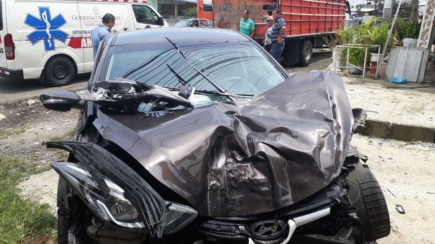 La conductora de este vehículo resultó con heridas y fue trasladada a un centro médico cercano por personal del Servicio de Atención Médica Prehospitalaria (SAMER) del Cuerpo de Bomberos de La Chorrera.