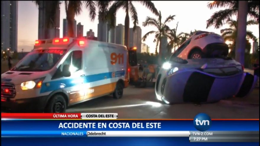 Un auto golpeó a otro y terminó sobre uno más la noche de este miércoles en una zona del barrio de Costa del Este perteneciente al corregimiento de Parque Lefevre.