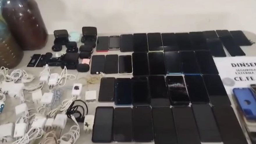 La intervención se llevó a cabo en los hogares 1, 2, 3, 6, 9 y 10, donde se decomisaron 30 celulares completos, 72 platinas artesanales, cinco pantallas de celulares, 12 cobertores, 35 cargadores completos, 41 cables USB y cuatro dispositivos tipo vaper.