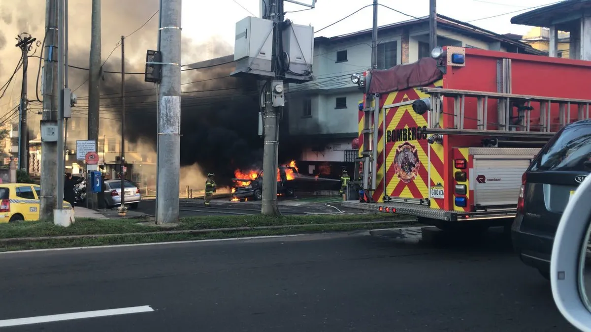 En redes sociales circularon imágenes y videos del impresionante momento en que el auto era consumido por las llamas.