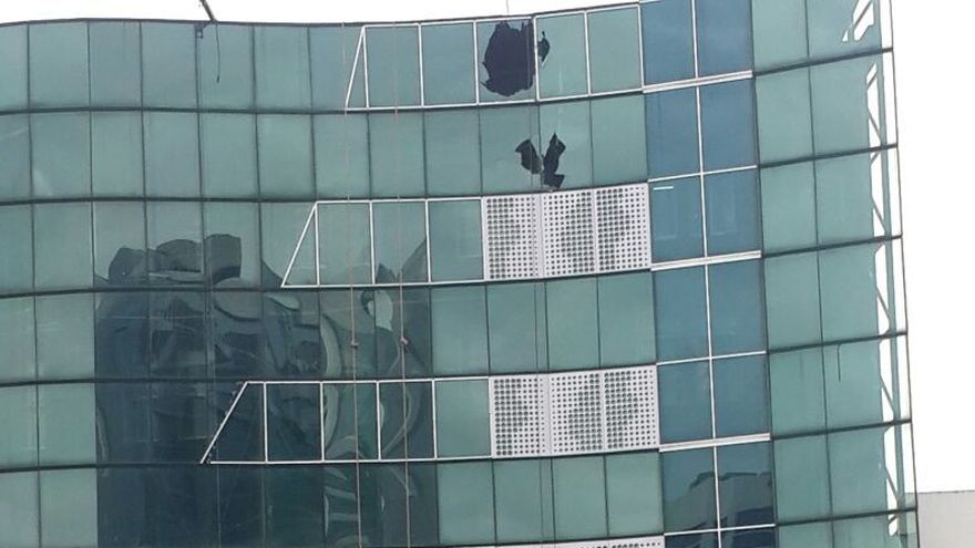 El hecho se dio aproximadamente a las 4:00 pm, cuando los camisas roja reciben la llamada de auxilio para proceder a rescatar a este obrero que se dedicaba a limpiar los vidrios en la parte externa de este edificio.