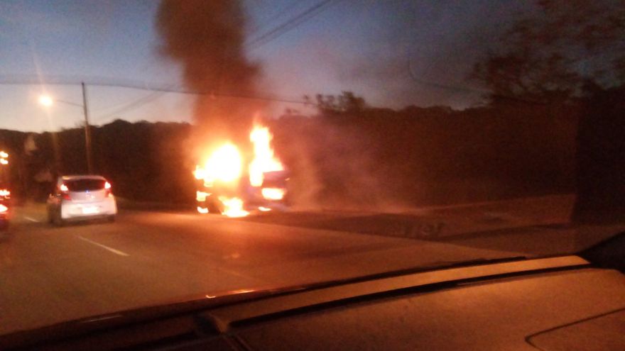 En las imágenes que circularon por redes sociales, se observa como las llamas consumieron la totalidad del vehículo.
