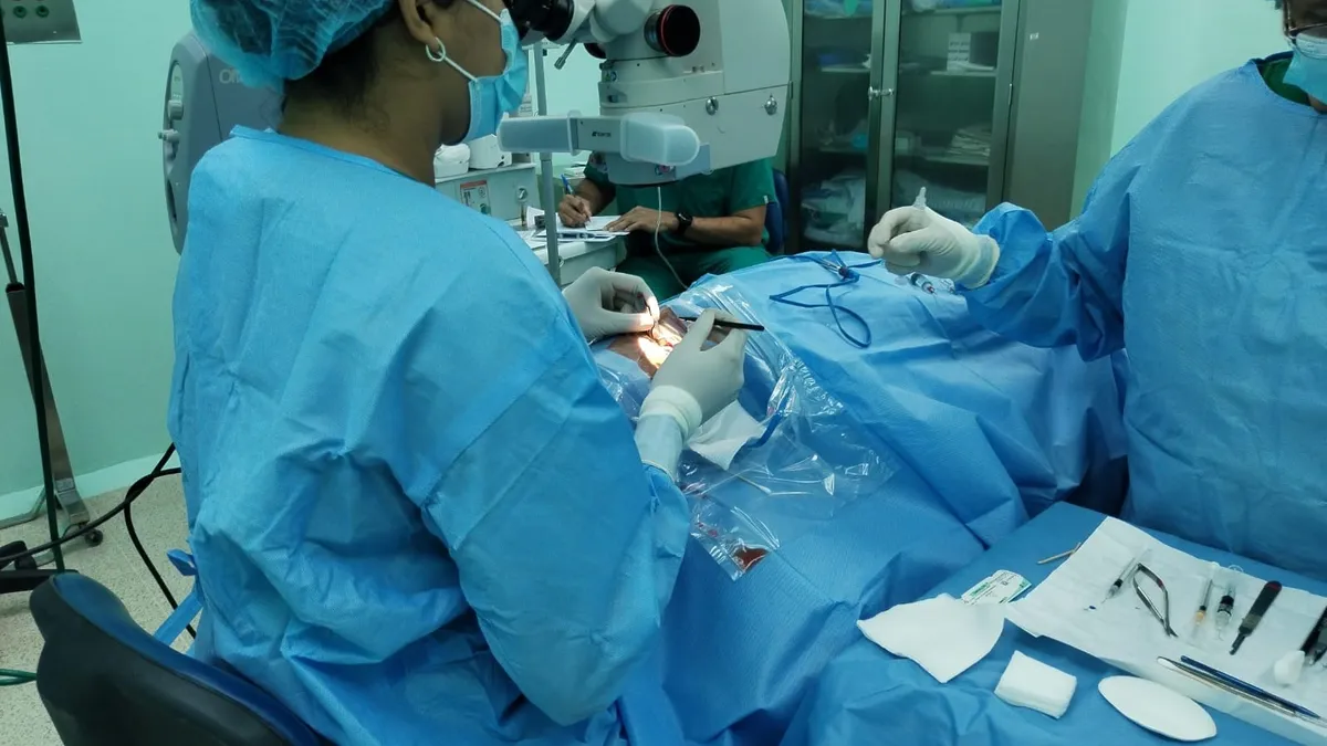Especialistas realizan una cirugía de cataratas a una paciente durante una jornada de reducción de mora quirúrgica. / Caja de Seguro Social