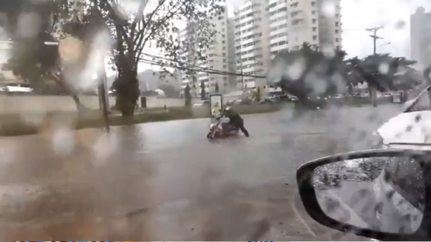 Varias calles inundadas fue el resultado del fuerte aguacero que se registra desde el mediodía de este lunes 7 de mayo en la ciudad capital.