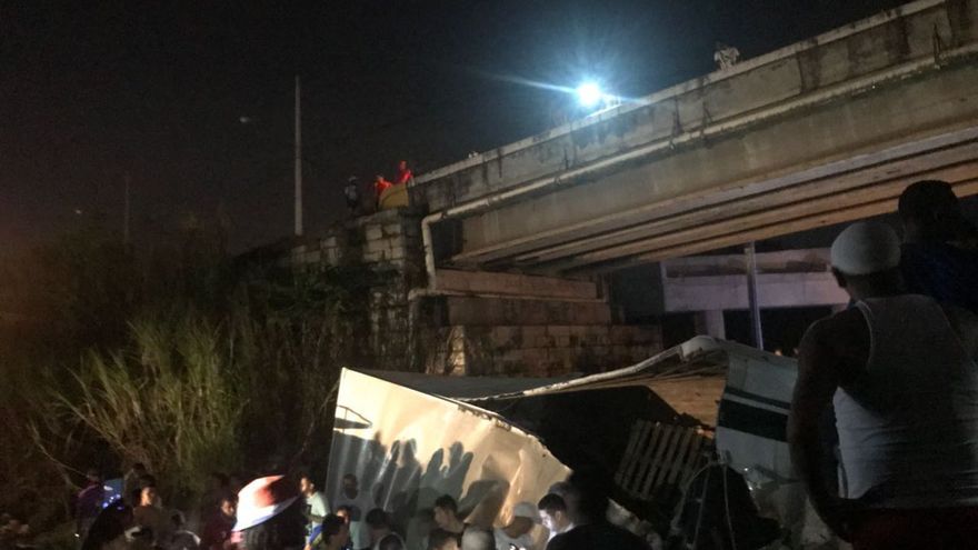 Un camión articulado cayó de un puente en el sector 10 del Corredor de Los Pobres, donde preliminarmente se habla de cuatro personas heridas. Se desconoce si hubo víctimas.