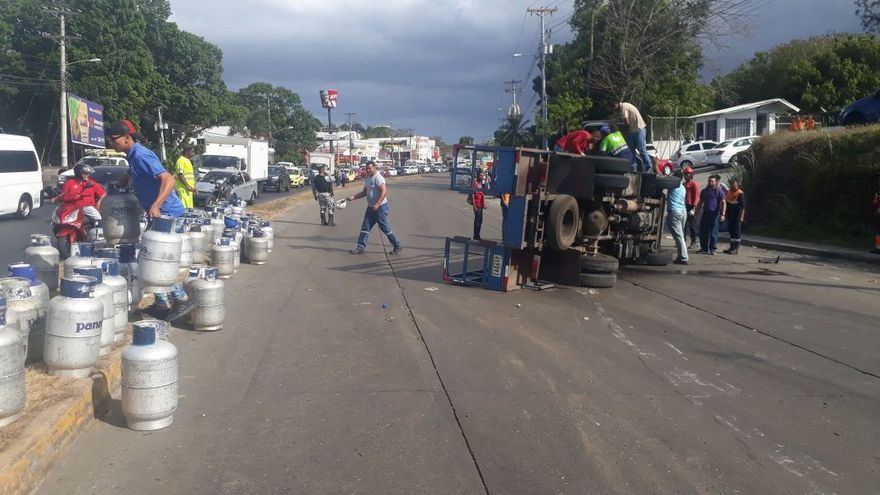 El camión, que transitaba desde Panamá Norte hacia el centro de la Ciudad de Panamá, se volcó, arrojando gran cantidad de tanques de gas a la calle.