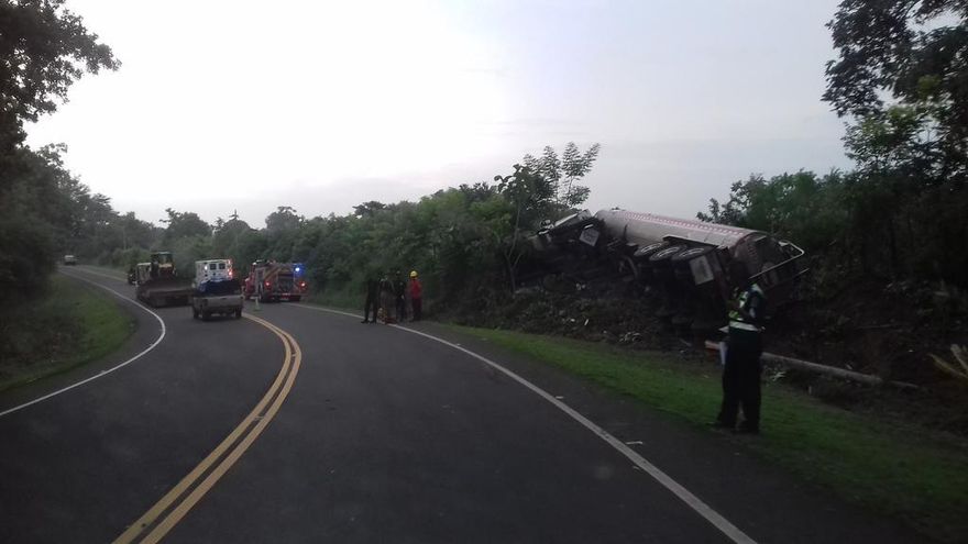 Un camión cisterna se volcó en la vía Interamericana, camino hacia El Llano de Chepo.