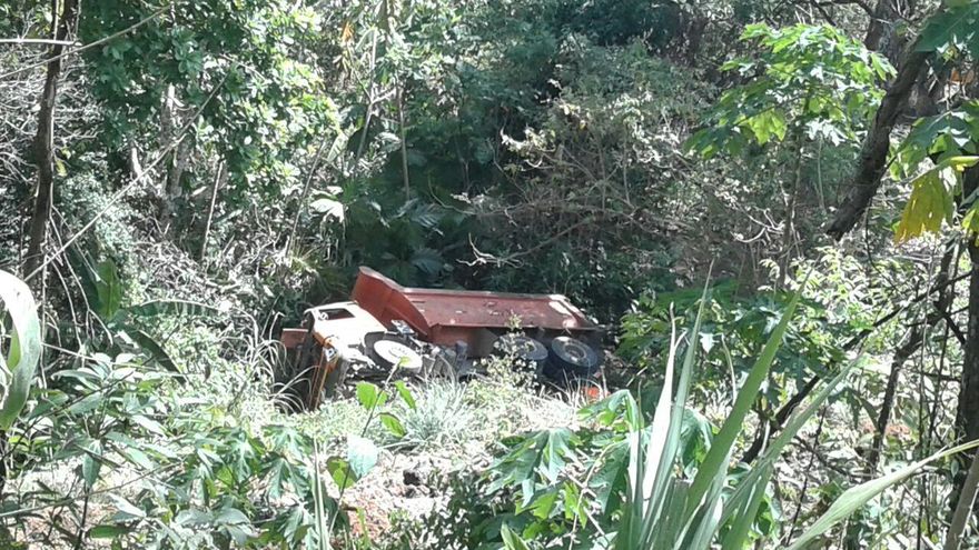 Un camión volquete se cayó por un precipicio en la vía hacia la playa de Bique en el distrito de Arraiján, provincia de Panamá Oeste.