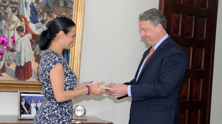 La audiencia protocalar se llevó a cabo en el Palacio Bolívar, en la sede de la Cancillería de Panamá, como paso previo a la presentación de esos mismos documentos ante el presidente panameño Juan Carlos Varela.