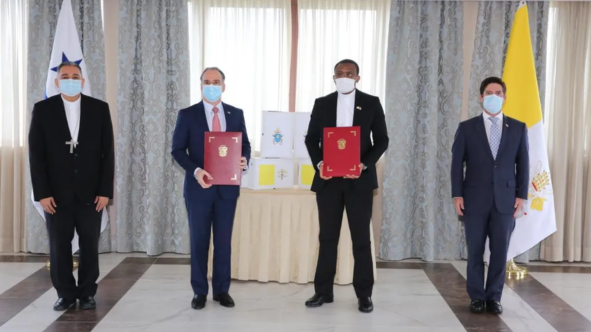 La entrega estuvo a cargo de monseñor José Domingo Ulloa y el encargado de negocios de la Nunciatura Apostólica en Panamá, el padre Gilber Tsogli.