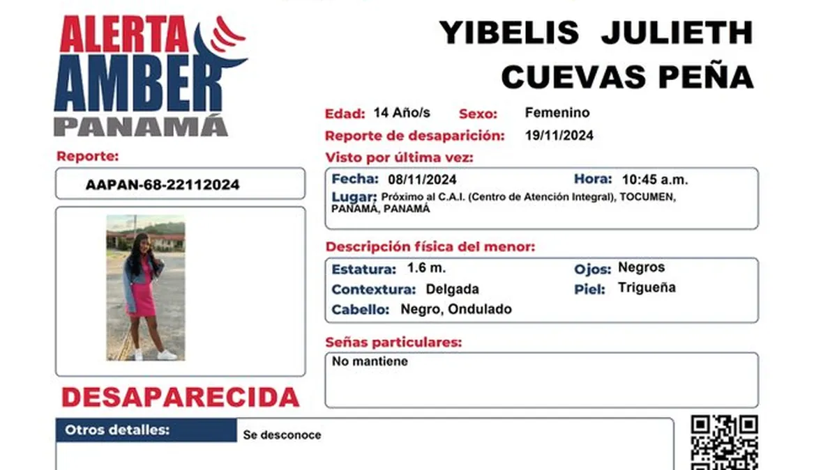 Panamá/Yibelis Yulieth Cuevas Peña , la adolescente de 14 años que había sido reportada como desaparecida en noviembre de 2024 fue ubicada en Nicaragua y repatriada este martes 30 de mayo con el acompañamiento de autoridades panameñas.