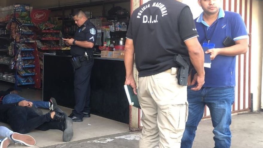 En imágenes compartidas por la policía, los tres capturados aparecen en el suelo del local comercial.
