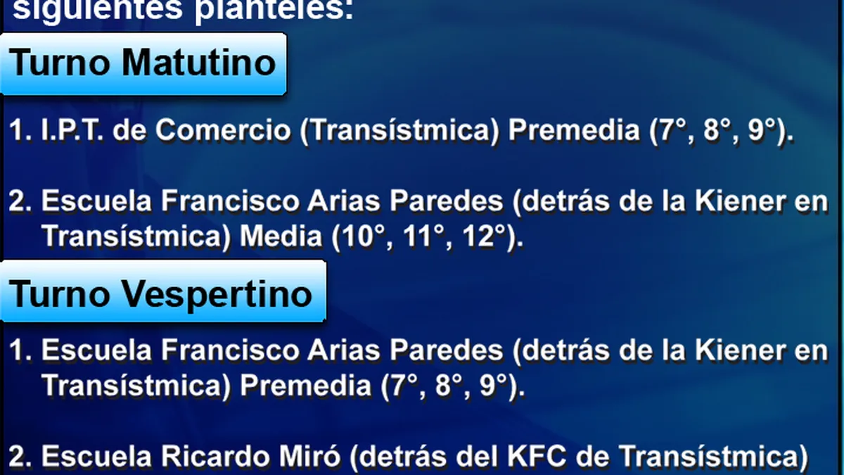 Un letrero de “colegio cerrado hasta segunda orden” avisa que en el Instituto América, ubicado en el corregimiento de Bethania, no se iniciará el año lectivo este lunes. El plantel no está listo para el inicio del año académico debido a que dos empresas, encargadas de la reparación del colegio, no cumplieron el contrato. Debido a que el Instituto América no está listo, los estudiantes darán clases por tres meses en otros colegios vecinos. Los estudiantes de premedia del turno de la mañana impartirán sus clases en el IPTC de Comercio. En la escuela Francisco Arias Paredes serán reubicados los estudiantes de la media del turno de la mañana y la premedia de la tarde. Los alumnos de media de la tarde acudirán a la escuela Ricardo Miró, informó la rectora del Instituto Nacional, Velkis Aguilar. El Meduca citó para hoy a los docentes y administrativos del Instituto América a una importante reunión a las 11:30 a.m. en las instalaciones de la escuela Francisco Arias Paredes, ubicadas en el corregimiento de Pueblo Nuevo. Sin embargo, los docentes Roberto Garrido y Armando Barrios, están muy preocupados porque el colegio está cerrado a inicios del nuevo año académico. Se les había prometido arreglar la escuela y entregar nuevos laboratorios. Desde 2012 se quedaron sin laboratorio de biología y ciencias naturales, por lo que los estudiantes salieron sin haber recibido esa instrucción.