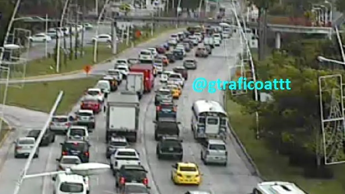 El departamento de Gestión del Tráfico de la Autoridad de Tránsito y Transporte Terrestre (ATTT) difundió imágenes del congestionamiento en la zona: en una toma cerrada hay poco más de 50 autos varados. Dos de ellos intentando entrar a los carriles de forma desordenada, y otro auto circulando por el carril exclusivo para transporte público.