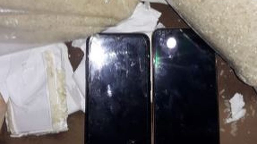 Dos celulares empaquetados dentro de bolsas de arroz, fueron decomisados por custodios penitenciarios a un ciudadano en el área de entrega de encomiendas para privadas de libertad del Centro Femenino de Rehabilitación Cecilia Orillac de Chiari (Cefere).