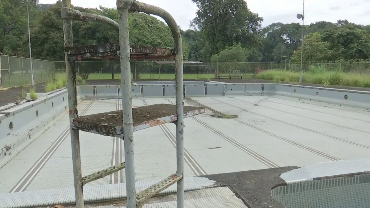 El panorama preocupa a los residentes, quienes lamentan que el complejo —que también incluye canchas de fútbol, tenis y baloncesto— se haya convertido en un riesgo para la comunidad. En los alrededores, los juegos del parque infantil presentan estructuras de hierro oxidado y el pasto crecido favorece la aparición de serpientes y otros animales propios de la zona.