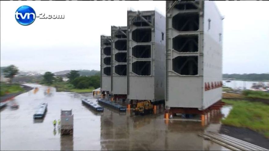 Mientras que las dos destinadas para el proyecto en el Atlántico permanecerán en el sitio hasta el momento de su instalación, las otras dos serán trasladadas luego al Pacífico, una vez se culmine la instalación de los bloques de soporte en el muelle construido para su desembarque.