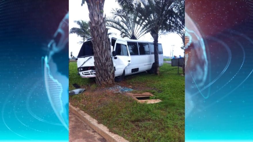 Fotos que circulan en redes sociales dan cuenta de que el Coaster se subió a una isleta y quedó estrellado con una palmera.