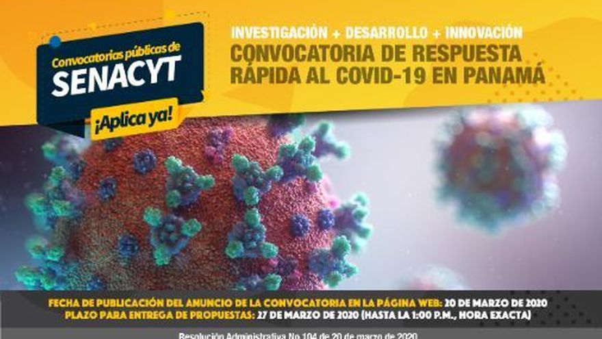 La Secretaría Nacional de Ciencia, Tecnología e Innovación (Senacyt), anunció la convocatoria de “Respuesta Rápida al COVID-19”, con la que invitan a toda la comunidad científico-tecnológica a participar y presentar sus propuestas.