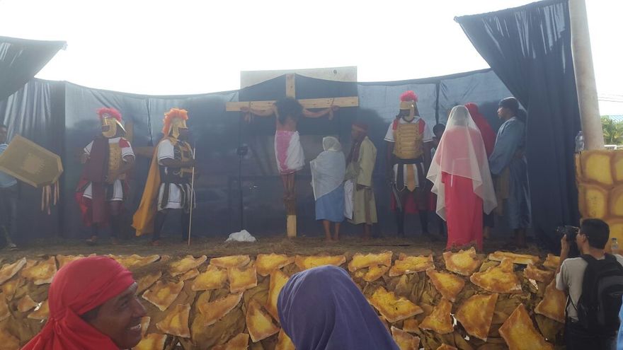 En varias parroquias se conmemora la pasión de Cristo y se realizan dramatizaciones en vivo.
