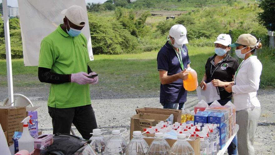 Gel alcoholado, jabón antibacterial, desinfectante en spray entre otros productos fueron confiscados en un establecimiento improvisado ubicado en la avenida Ricardo J. Alfaro y Vía Porras.