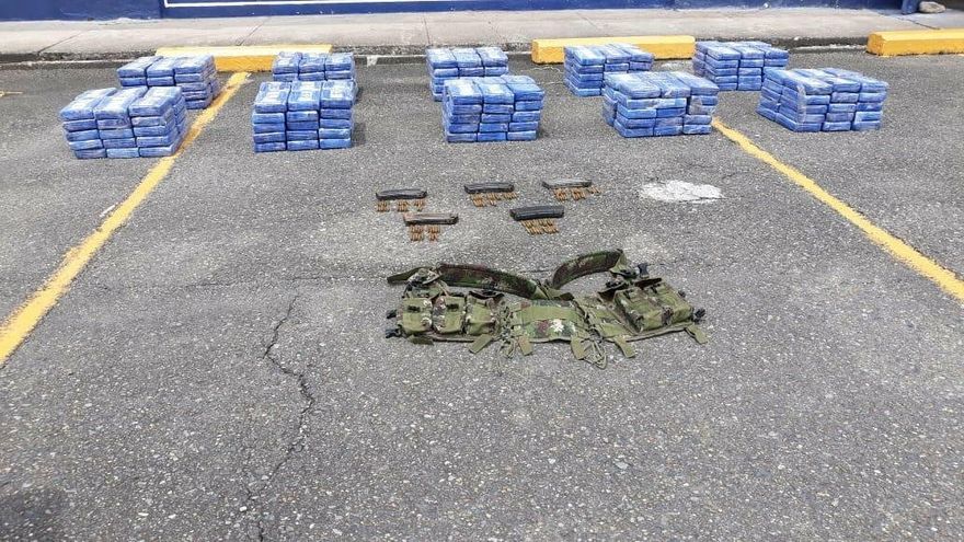 Agentes del Servicio Nacional Aeronaval (Senan) decomisaron 300 paquetes con presunta sustancia ilícita y cinco cargadores de armas de fuego en una lancha en el área de Escribano, Costa Arriba de Colón.