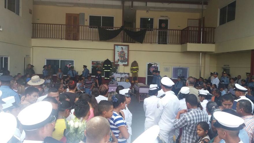 Entre campanadas, flores, agua y una calle de honor de compañeros y miembros de los estamentos de seguridad, se realizó la despedida. Los féretros fueron ubicados en uno de los autos de extinción de fuego, para ser trasladados al cementerio municipal de Bugaba para su entierro.