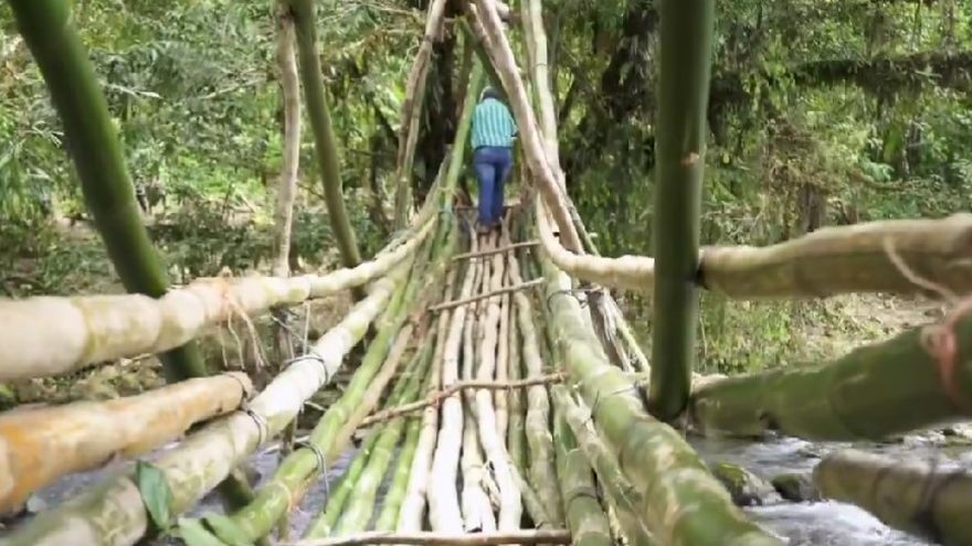 Es a través de poleas y puentes improvisados construidos con bambú, los cuales surcan los ríos, la única manera que han concebido estos ciudadanos para trasladarse.