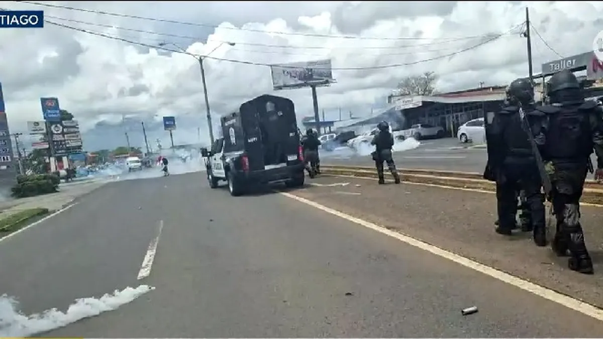 Docentes protestan en Santiago, Policía Nacional interviene para reabrir vía