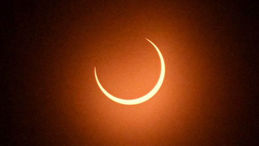 Esto ocurre cuando la Luna se interpone entre el Sol y la Tierra en su punto más lejano de nuestro planeta. Dado que está tan distante, no cubre por completo al Sol, lo que crea un efecto de "anillo de fuego" naranja.