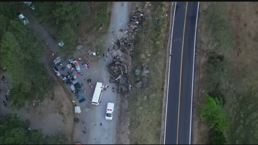 El dueño de este bus dijo que vio cuando el transporte con los migrantes iba bajando, impactó las barandas de seguridad de metal y cayó en la carretera de acceso donde lo impactó.