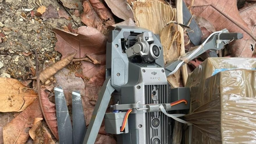 Unidades del Grupo de Reacción Inmediata Motorizada y las unidades del Batallón Chepo ubicaron en un dron en un lote baldío localizado en la parte de atrás de calle segunda La Balbina en Tanara de Chepo.