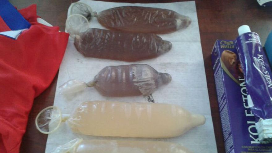 Al menos en cinco cajas de tinte mantenían la droga liquida dentro de los tubos donde se supone debería venir el químico de color para cabello. La Fiscalía de droga analizó el contenido, dando positivo para cocaína.