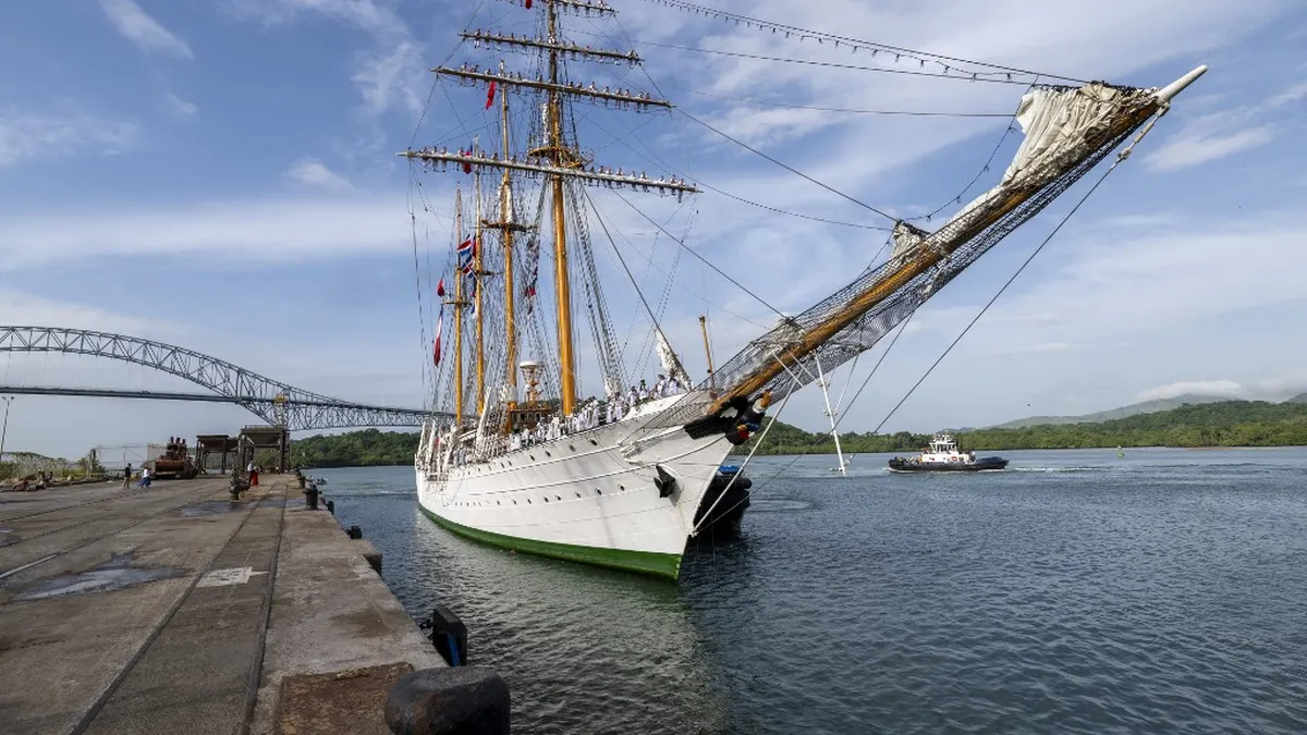 Un enorme velero escuela rompe la rutina en el Canal de Panamá